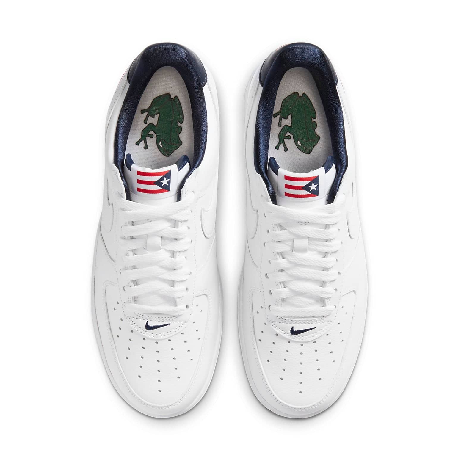 Nike revisits its 2005 release to bring to us the Air Force 1 Low Retro “Puerto Rico”. Featuring a white tumbled leather upper, the signature navy Swoosh is changed to white as well. The Puerto Rican flag appears on the tongue, heel and ankle. Look insole to find the native Puerto Rican coquí frog.